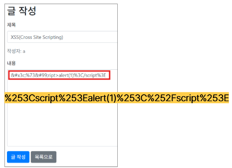이와 같은 이중 인코딩 코드를 삽입하면 성공적으로 XSS가 성공한 것을 확인할 수 있습니다.