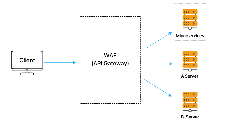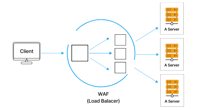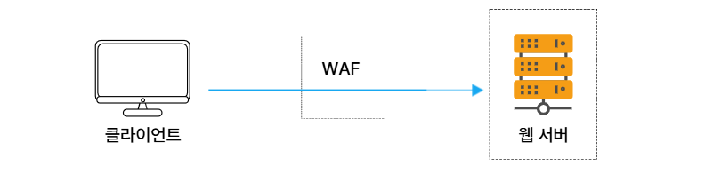 클라이언트는 WAF의 IP를 목적지로 삼아 요청하며, WAF에서 요청을 검증한 후 안전한 요청만 서버로 전달됩니다.